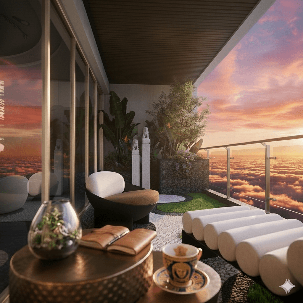 Large Arena balconies and 270° views bring villa-like openness into the sky.